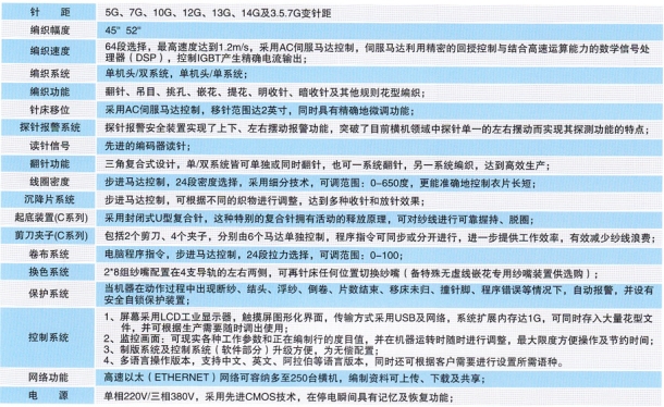 機器主要功能參數: