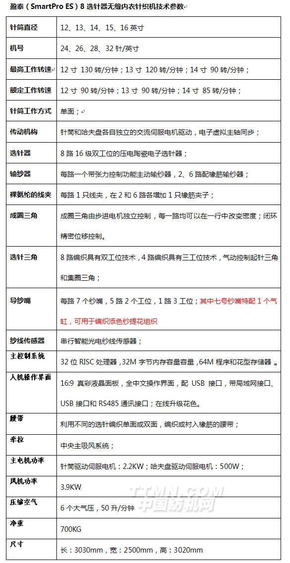 適宜穩定、高效大批量生產的盈泰(SMARTPRO ES)8選針器無縫內衣針織機