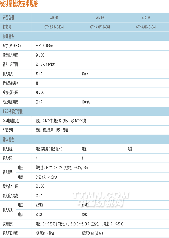 CTH300模擬量輸入模塊(AIS-04、AIV-08、AIC-08)